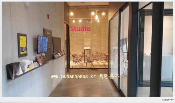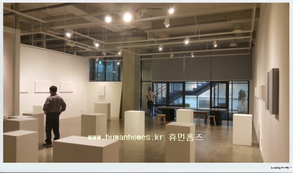 휴먼홈즈에서는 갤러리 인테리어로 사무공간과 마감처리는 백색 도장으로