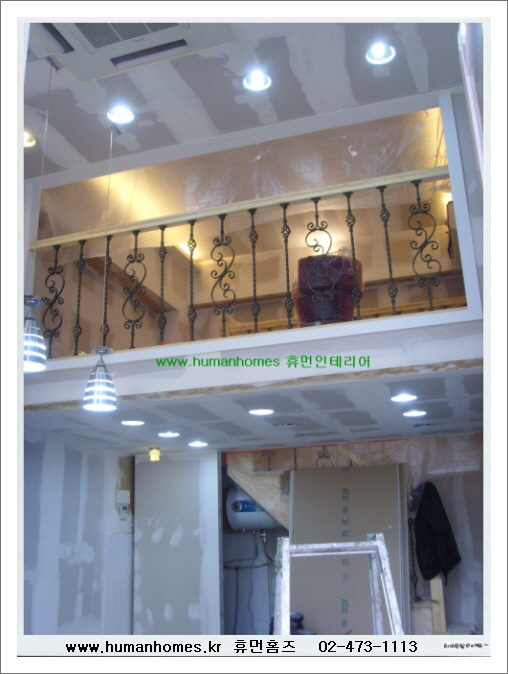 기존 타 업종의 업소를 천정까지 철거후 높은 천고를 이용하여 새로 복층으로 시공하였습니다.