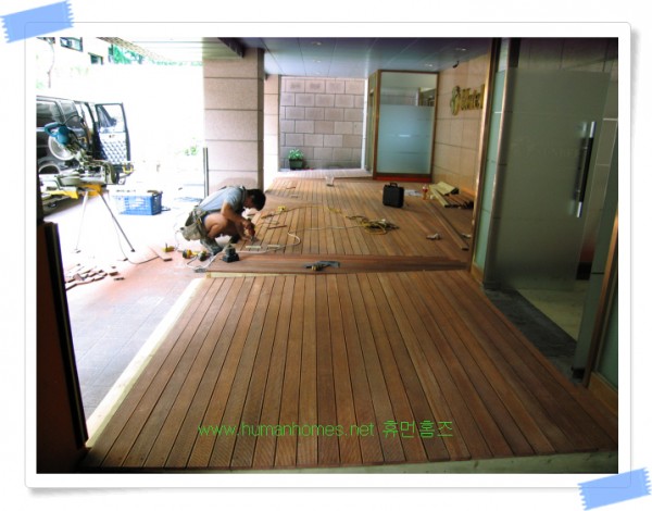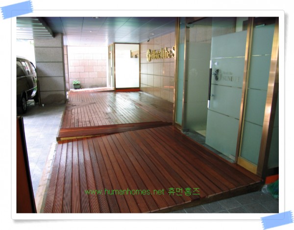 데크자재는 브라질산 고급 하드우드 레드이페(Red-ipe)목재를 사용하여 시공하였습니다.