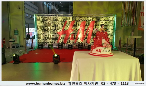 경기도 이천 물류창고에서 열린 H&M 의류브랜드런칭 포토존과 음향, 조명행사입니다. 기획사에서는 뮤지컬과 국악공연을 준비하였으며, 휴먼홈즈에서는 포토월과 음향, 조명 ,컷팅식 등의 행사지원을 하였습니다. 포토존 , 무대 , 음향 , 조명행사 문의는 휴먼홈즈 02 - 473 - 1113