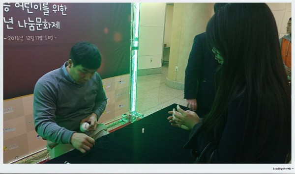 초청된 김현수 선수는 환아들과의 기념촬영을 마치고 찾아온 일반인 팬들에게 싸인회를 진행하였습니다.