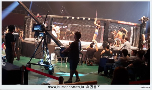 탑FC걸로 활동중인 레이싱 모델 이은혜가 케이지를 돌며 포즈를 취하고 있다. - 관련기사.