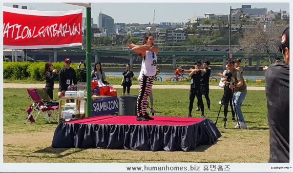 한강공원 삼바존 간이무대 행사입니다.