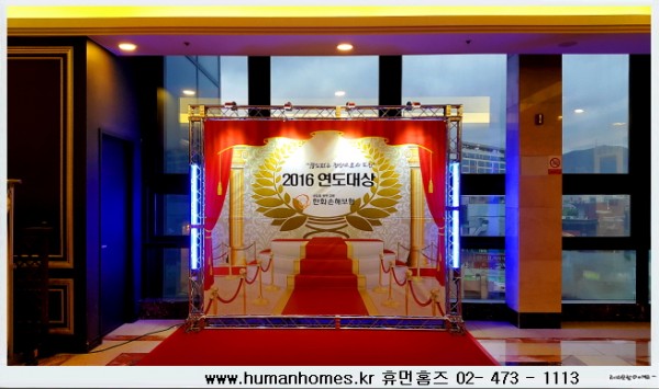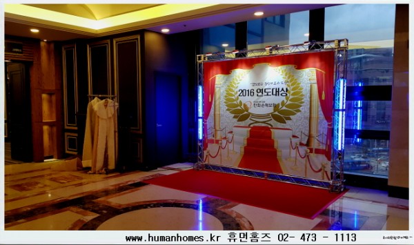 [ 현수막, 카펫 바닥재 포함이며 사진상 보이는 포인트 조명은 옵션 제공합니다.~~ ]