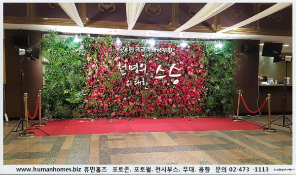 휴먼홈즈에서 설치한 웅장한 플라워 포토존과 로비입구에 설치한 대형 포토존설치 입니다.