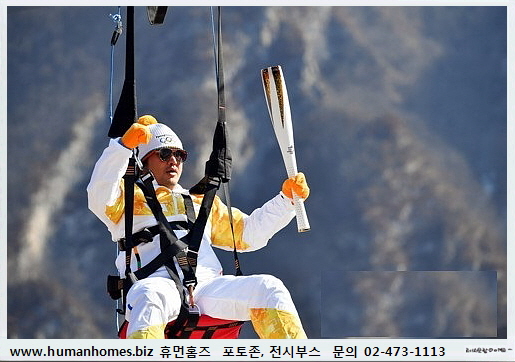 성화봉송 - 짚와이어를 타고 내려오는 연예인 김보성씨.