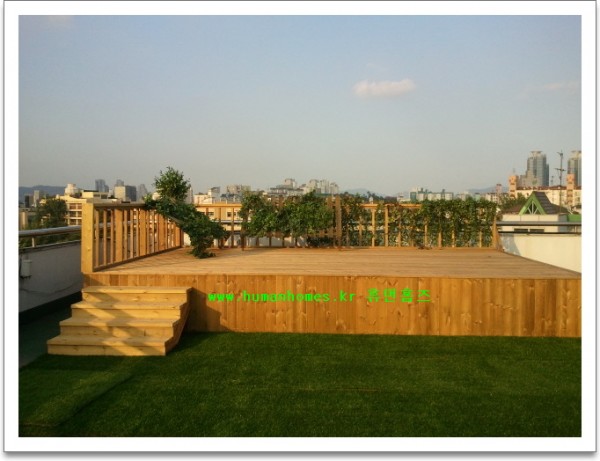 옥상공간은 옥외 자연미있는 웨딩촬영을 위해 계단부와 넓은 데크시공을 하였습니다. 시공후 올라가보니 데크와 어우러진 스카이라인도 멋집니다.~~