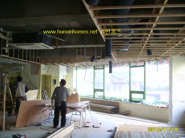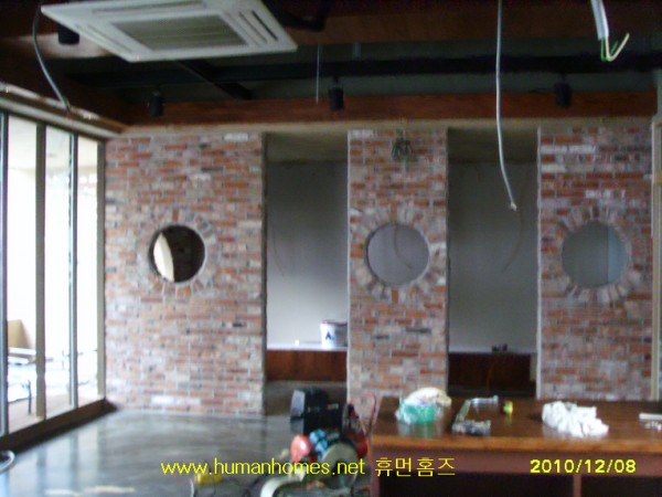 시공내역: 천정일부노출, 테이블공간 일부 고벽돌칸막이,천정냉난방,바닥일부 투명 우레탄 시공 외